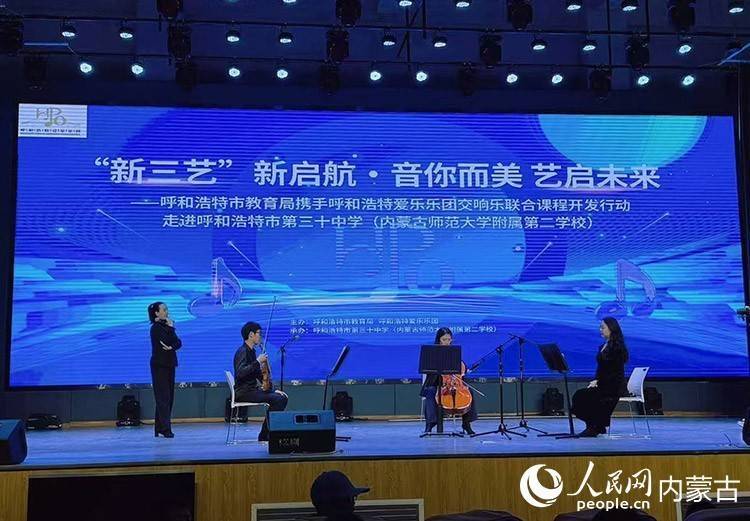 交响乐课堂上,旋律中藏着文化的共鸣。呼和浩特爱乐乐团打造的“大音乐课”体系,通过“走出去赏演、引进来授课、深融合教学”三维发力,让高雅艺术不再遥远。呼和浩特市第一中学美育教研组组长王芳介绍,学校与爱乐乐团联合开发交响乐课程,打破了传统音乐欣赏课的局限。“不是简单演出,而是演奏家边演边讲,学生能上台触摸乐器、了解构造和音色,从‘看热闹’变成‘看门道’。”